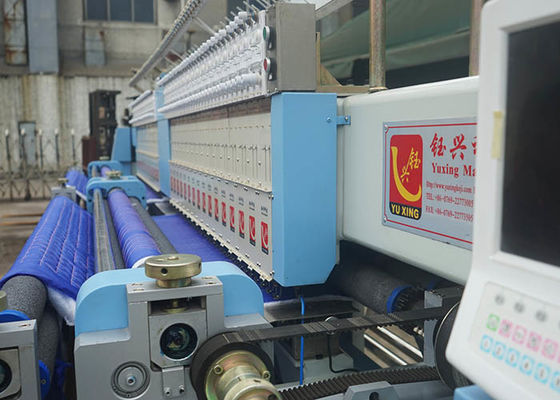 La máquina principal multi del bordado está acolchando y bordado que procesan al mismo tiempo. Tiene 33 cabezas, cada cabeza tiene 2 agujas, cada aguja es sola controlada para trabajar independientemente. La máquina puede almacenar cerca de 1000 modelos y existir ya 500 modelos en ordenador. X.Y, motores de Z son conducidos por el motor servo de Japón Panasonic. Widly se utiliza para la ropa, los edredones, la manta, las cubiertas del edredón, los pijamas, los bolsos, la caja de la almohada, la cubierta de asiento de carro, el etc. de alta calidad.